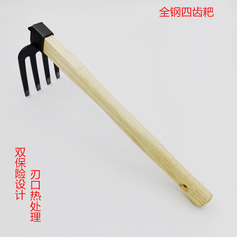 Youchuan alat kayu Semua baja pegangan empat gigi garpu pertanian berkebun bunga kecil cangkul tangan sekop laser menandai LOGO