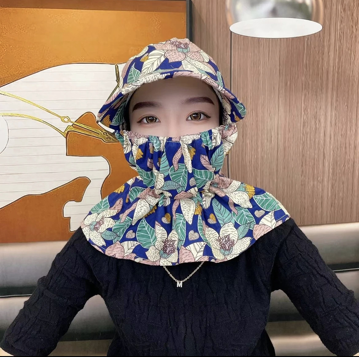 Topi pelindung matahari, topi sutra katun pola baru bernapas pelindung leher perlindungan wajah kerja pertanian luar ruangan berkendara wanita