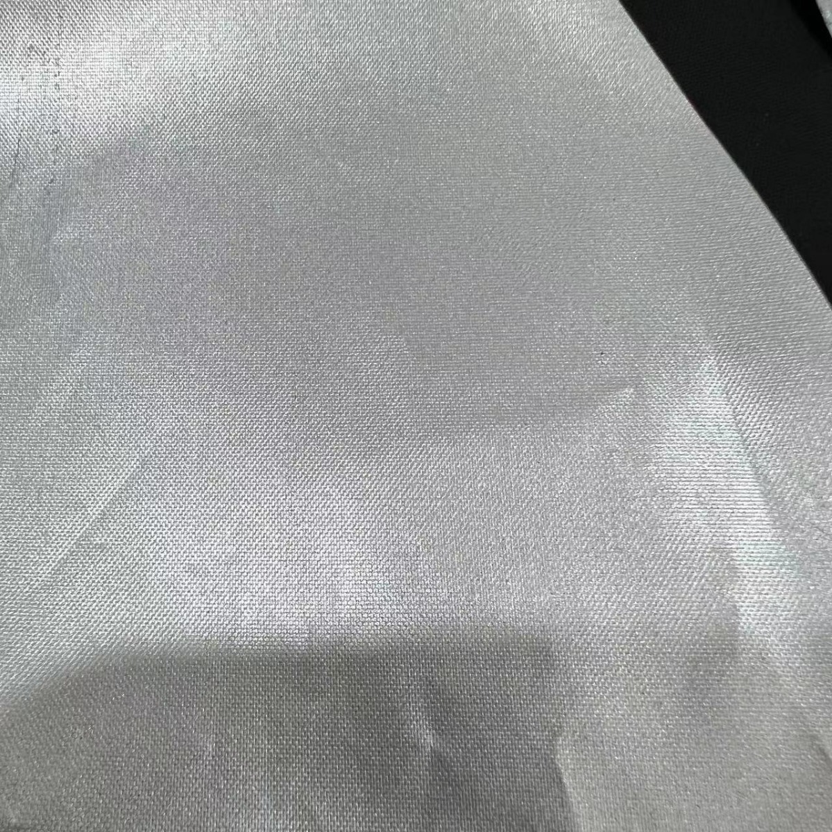 Dalam stok 190t sutra hitam poliester taffeta sepuhan penuh perak buram benang putih kain kanopi tenda tahan gores