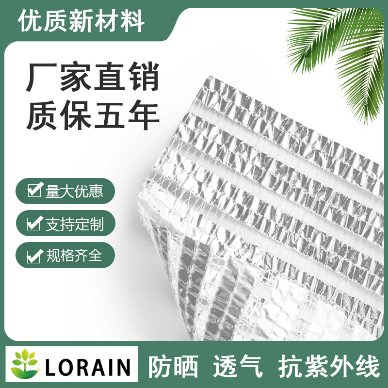 Jaring pelindung matahari dari aluminium foil 65% untuk rumah kaca pertanian, pelindung matahari halaman, budidaya bunga dan tanaman sukulen, peneduh rumah tangga dan pertanian.