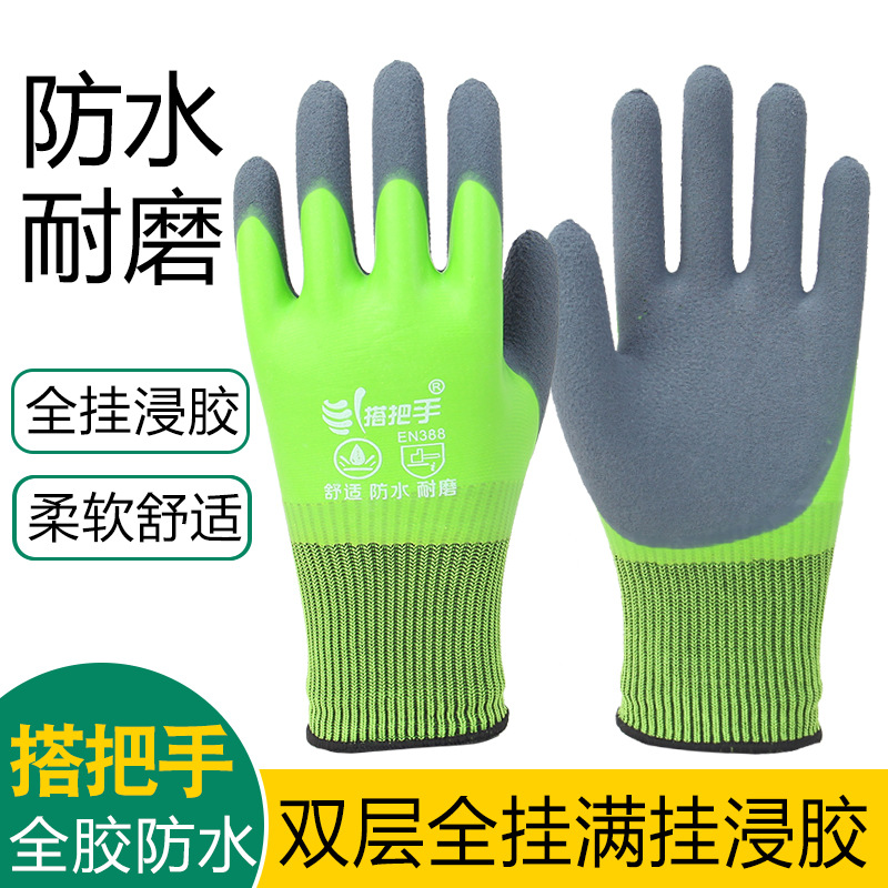 Sarung tangan karet pelindung kerja, sarung tangan karet pegangan penuh, karet pelindung tenaga kerja, anti aus, antiselip, minyak, kerja, akuatik, anti air
