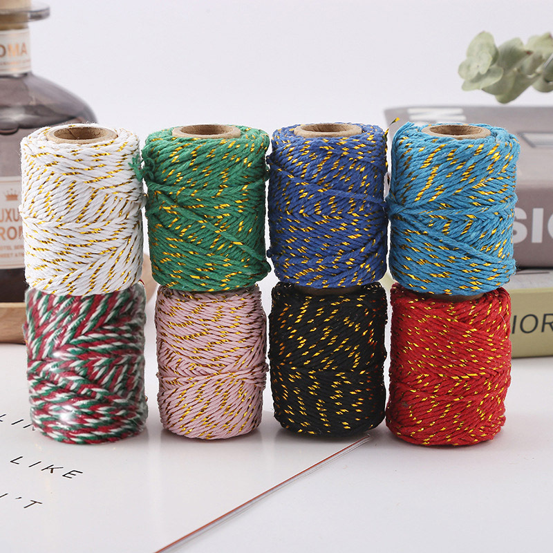 Tali katun dua warna anyaman dekoratif benang katun Emas sutra dekorasi dekorasi tali katun kepiting binding kemasan tali rami biru