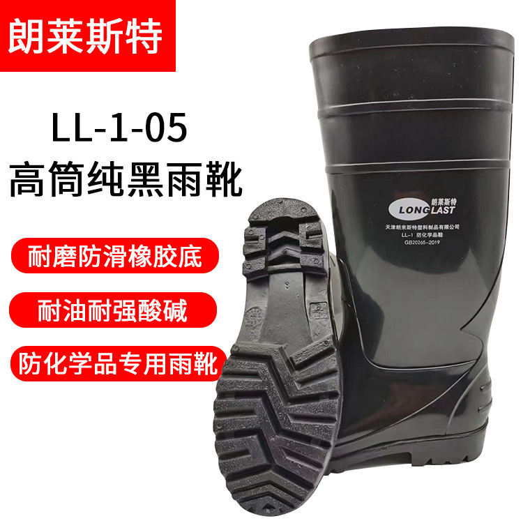 Longlester sepatu bot hujan, sepatu bot bahan kimia anti-selip, sepatu Air bagian bawah Oxford LL-1-05 tinggi warna hitam