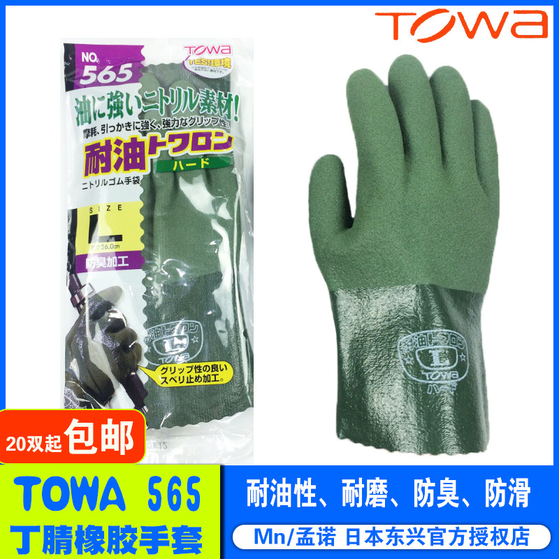 TOWA sarung tangan nitril tahan minyak, sarung tangan 565 penyimpanan gedung nelayan berkebun anti selip Jepang