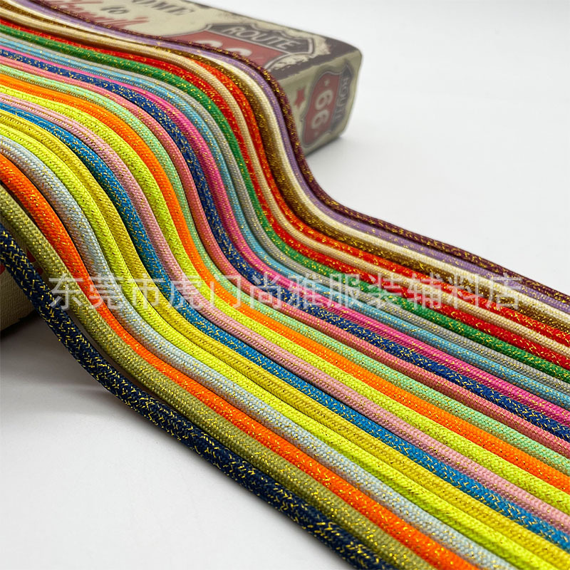 Tersedia grosir warna 5mm dengan sutra emas tali bulat bagasi tali portabel mainan hadiah tas topi tali aksesoris