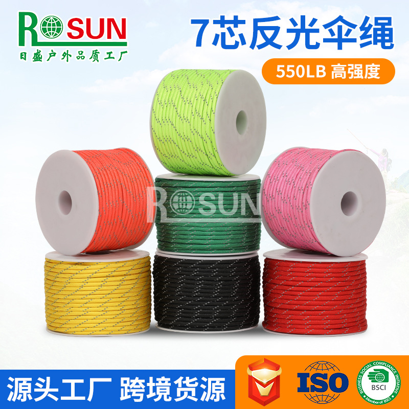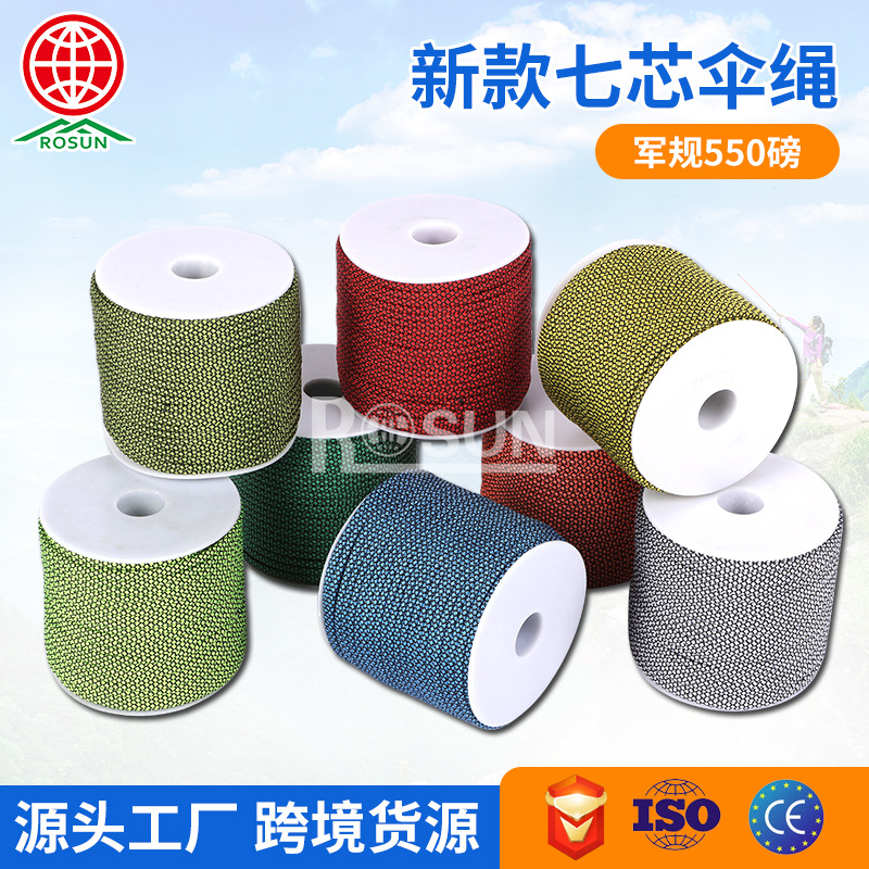 Cross-border tali payung nilon bercahaya, tali payung nilon tujuh inti terlaris regulasi militer 550 tali payung tali payung neon tali angin