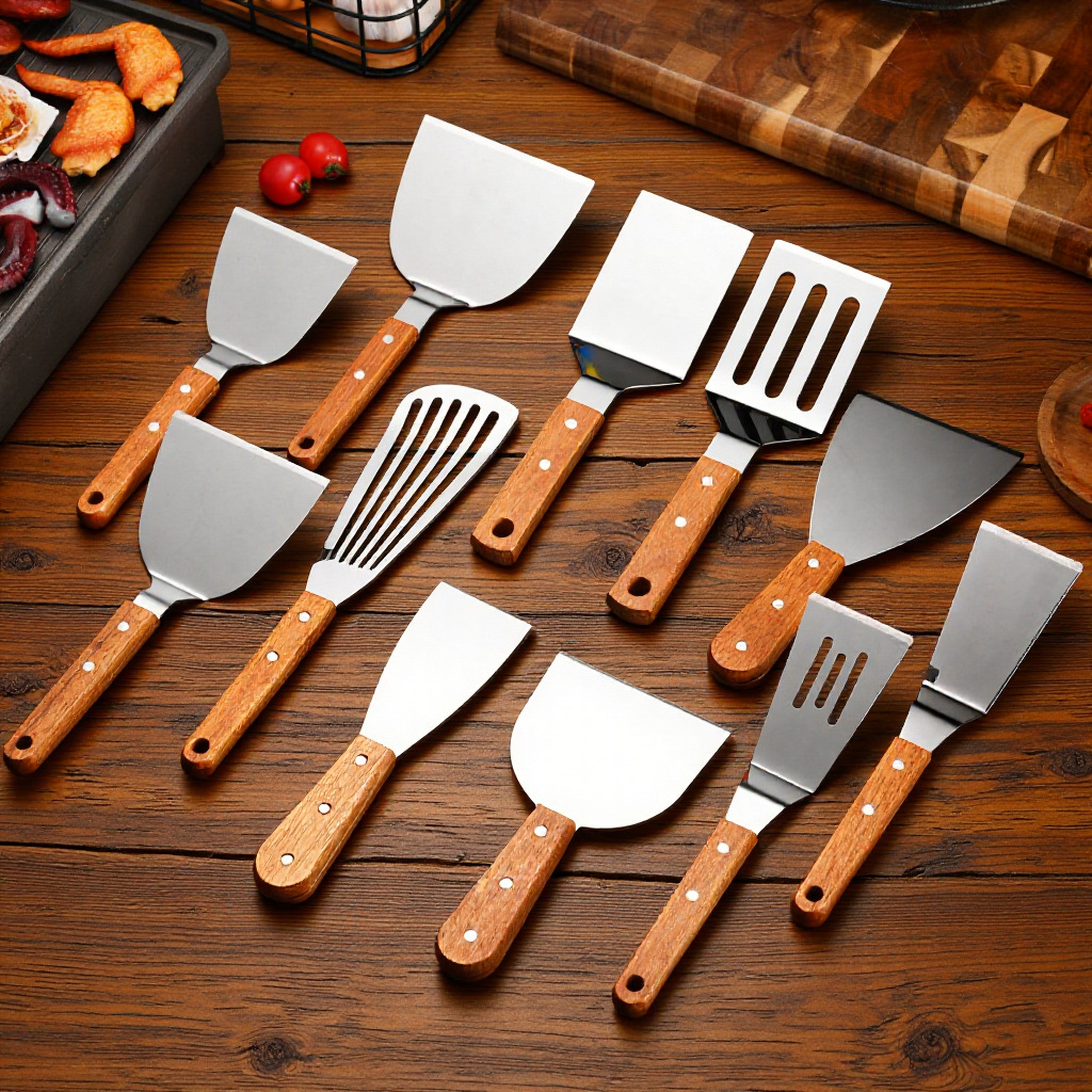 Sendok Panci Stainless Steel Spatula Gagang Kayu Perpanjang Spatula Memasak Spatula Memasak Spatula Memasak Spatula Peralatan Dapur Rumah Tangga Tahan Suhu Tinggi Anti Panas
