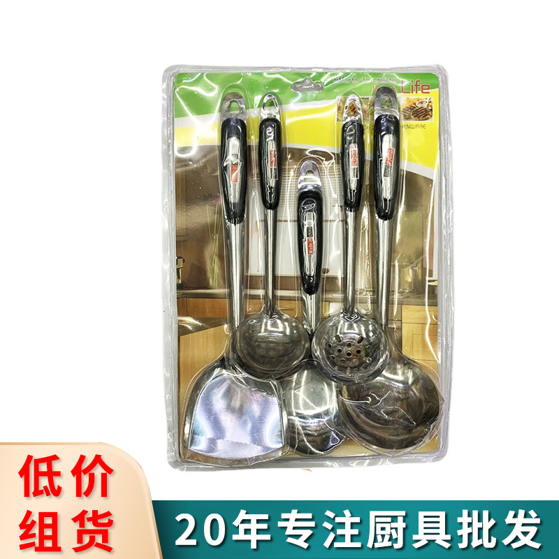 410 sendok stainless steel, sendok sekop penyaring spatula peralatan makan lima buah sekop sendok setelan peralatan dapur rumah tangga
