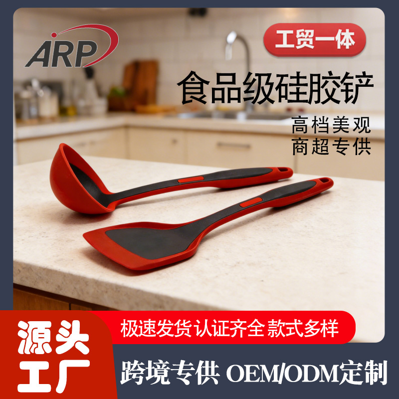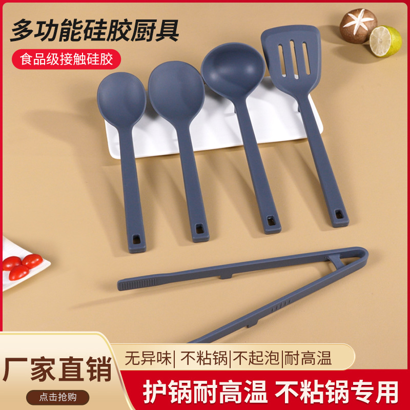 Spatula silikon untuk penggunaan rumah tangga, model sama dengan merek besar, set peralatan masak anti lengket, anti panas, sendok tahan suhu tinggi, grosir dari produsen.