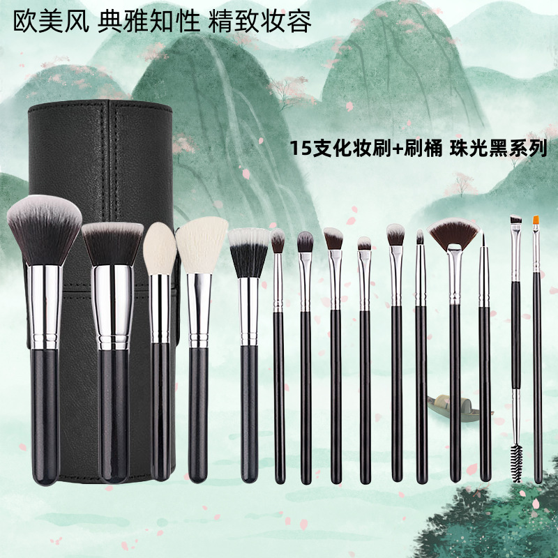 Cross-border setelan kuas rias 15 set lengkap pemula lembut rambut sikat longgar portabel alat kecantikan Perona mata