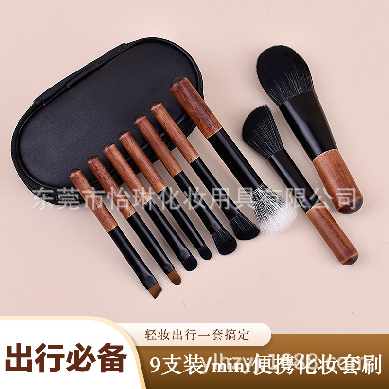 9 buah kuas makeup bulu hewan warna bertitik wol mini portabel super lembut set penuh longgar bedak eye shadow sikat alat makeup