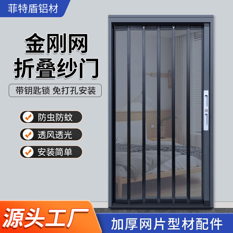 Jaring King Kong Pintu Layar Lipat Pintu Gorong Tak Terlihat dengan Kunci Anti Nyamuk Anti-Pencurian Anti Kucing Rumah Tangga Pintu Gulir Paduan Aluminium