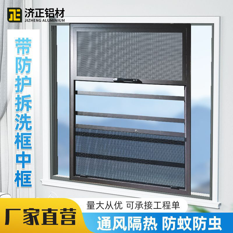 Bingkai tengah tunggal yang dapat dilepas dan dicuci bingkai berlian layar jendela rusak jembatan aluminium Aloi anti-nyamuk antimaling jendela rusak jembatan jendela geser aluminium
