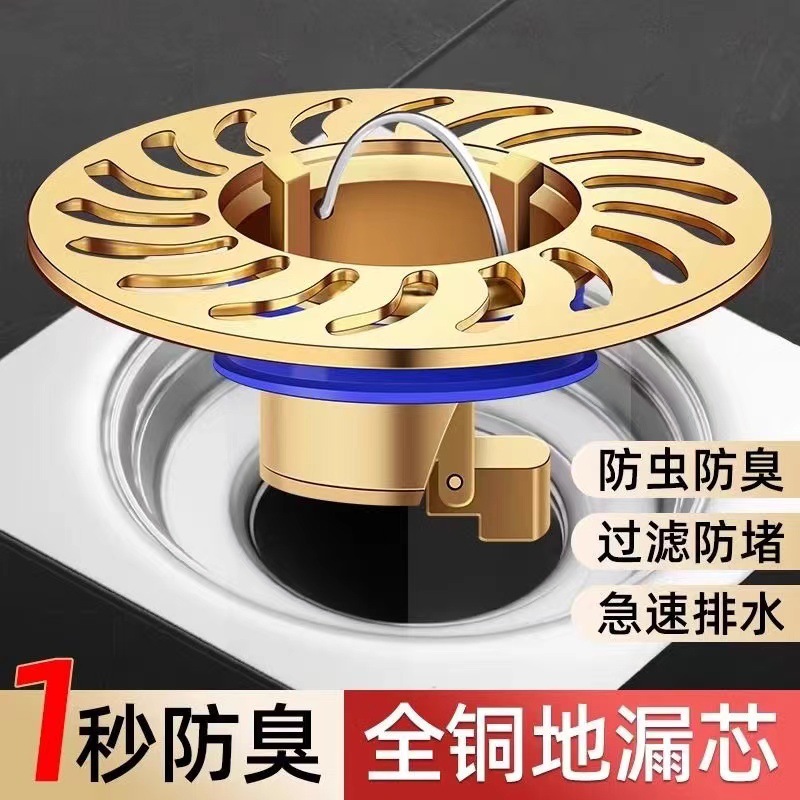 Saringan saluran air lantai tembaga, perangkat deodoran saluran pembuangan pipa kamar mandi, jaring deodoran, aksesori penutup inti dalam tersegel