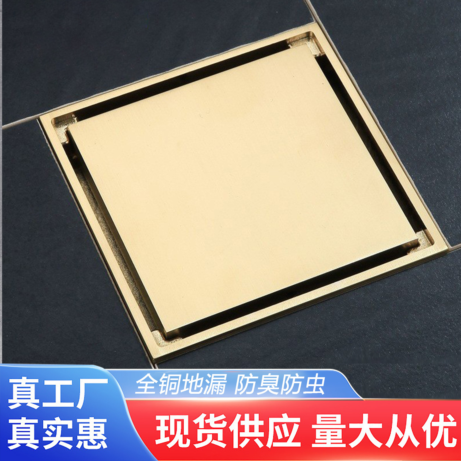 Tembaga disikat emas saluran air Deodoran dengan saringan inti dalam kamar mandi kamar mandi mesin cuci balkon tersembunyi emas penguras lantai
