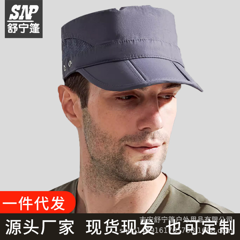 Topi Pria, topi militer pelindung matahari, lipat tiga atasan datar musim gugur dan musim panas, cepat kering