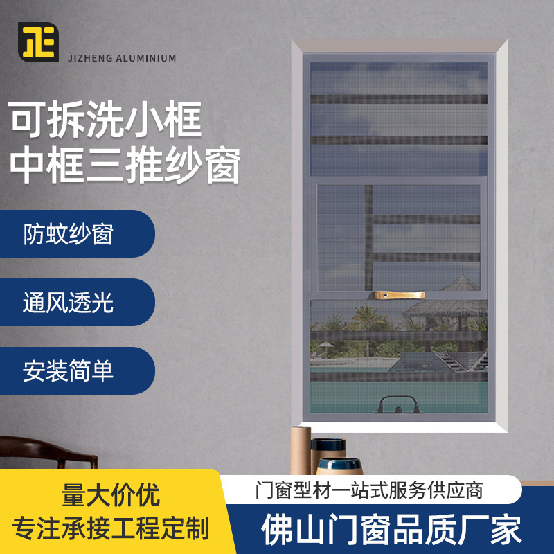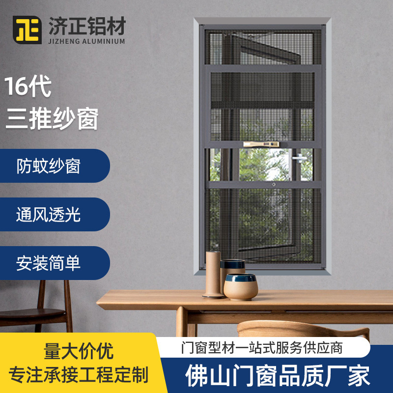 Perata jendela anti nyamuk, paduan aluminium anti-nyamuk anti-maling, tiga jendela layar tekan 16 generasi Tiga jala berlian dorong jendela tidak terlihat