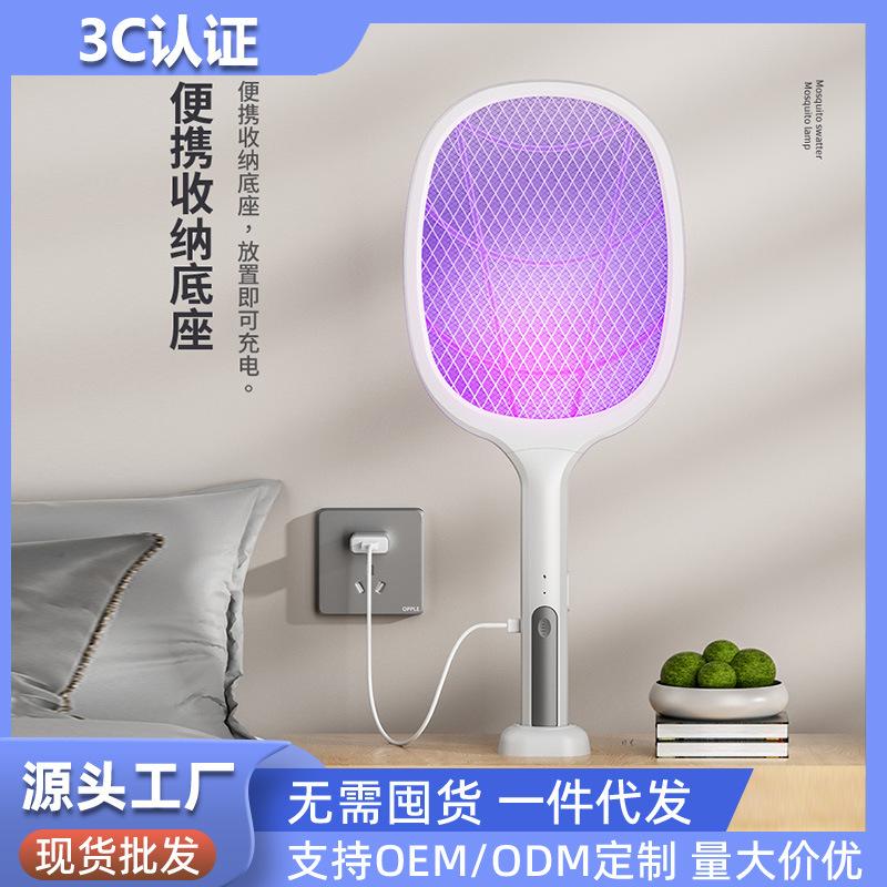 2024 baru pemukul nyamuk listrik jenis pengisian daya sengatan listrik rumah tangga lipat efisiensi tinggi dua dalam satu produsen grosir