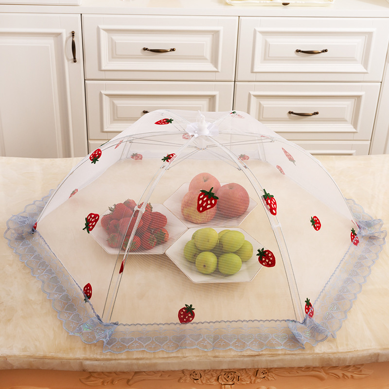 Penutup sayur bulat stroberi segar, penutup makanan anti serangga sederhana, penutup jaring dapat dilipat penutup sayuran