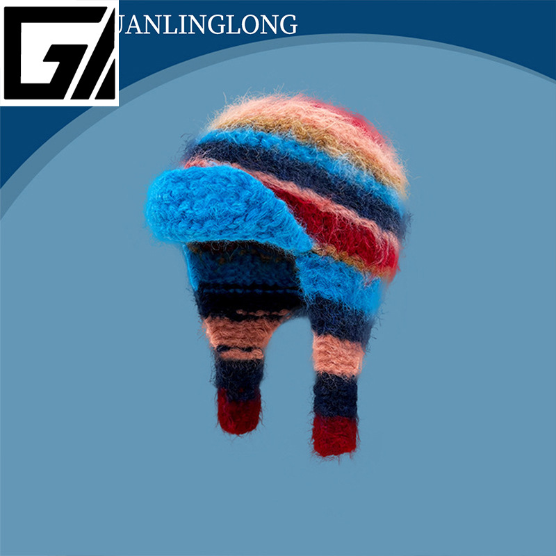 Topi Pelindung Telinga Model Sama dengan Paris Fashion Week 2025 Topi Bulu Rajutan Moe Model Baru Topi Pelangi Pelangi Dopamin