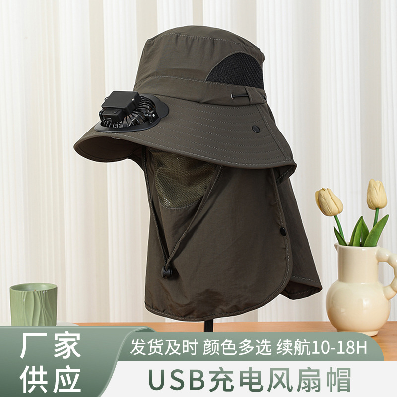 Topi musim panas dengan kipas isi ulang daya USB, topi pelindung matahari luar ruangan pria dewasa, tepi besar Kerja Pedesaan