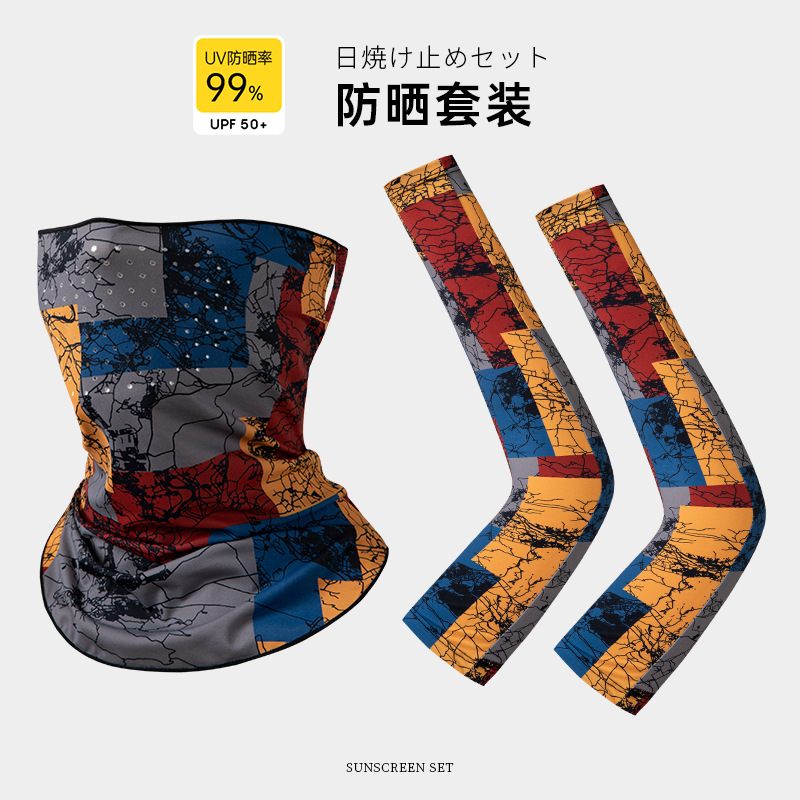 Set masker wajah dan lengan berbahan breathable untuk bersepeda, olahraga, penggunaan di luar ruangan, desain tato lengan motif bunga, set lengan pendingin, masker pelindung matahari berbahan sutra es.