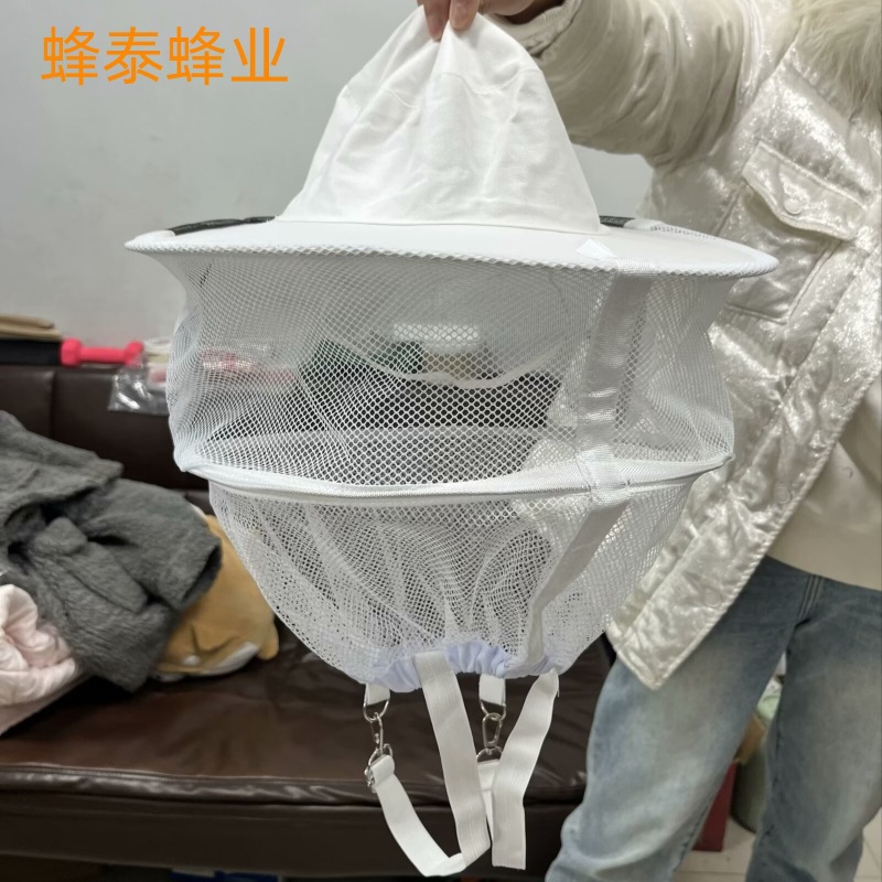 Topi Anti lebah lapisan ganda putih katun murni anti-nyamuk lebah gigit wajah jaring topi pelindung alat penjaga lebah grosir