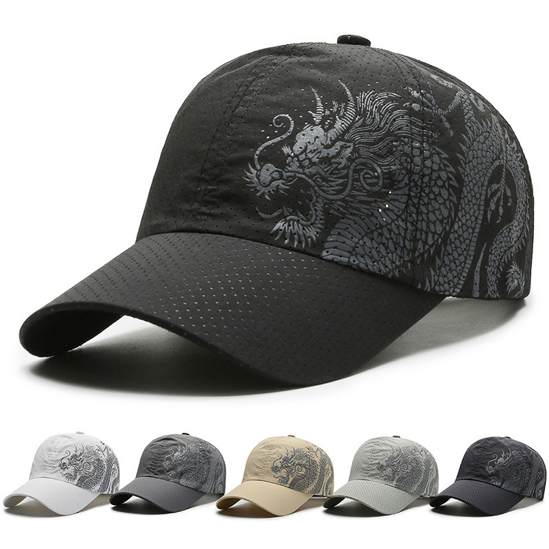 Topi Musim Panas Topi Bisbol Naga Bergaya Cina Topi Jaring Luar Ruangan Bersirkulasi Cepat Kering Topi Lidah Bebek Pria dan Wanita Pelindung Terik Matahari