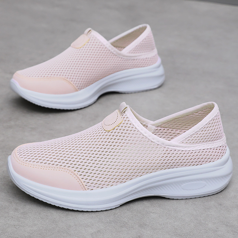 Sepatu Wanita Musim Panas Model Baru Bersirkulasi Sepatu Kasual Permukaan Jaring Nyamuk Sepatu Selop Sol Empuk Sepatu Ibu Nyaman dan Nyaman