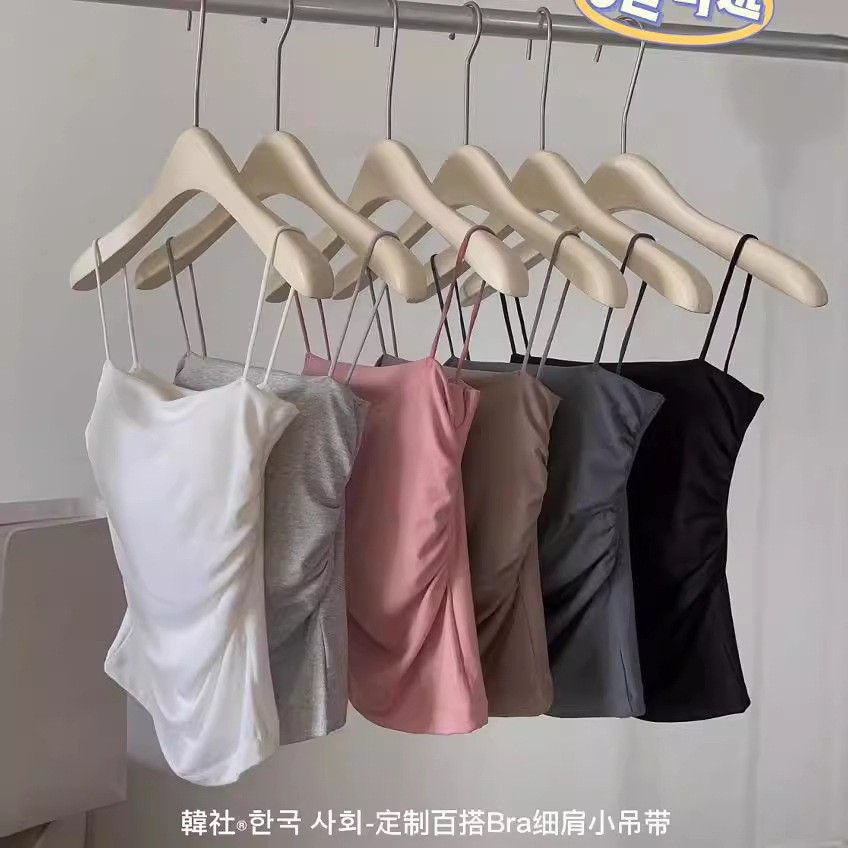 Kamisol putih wanita musim panas 2024 baru pakaian luar dan dalam bahu lebar penutup payudara benang penutup Semua cocok atasan bottoming