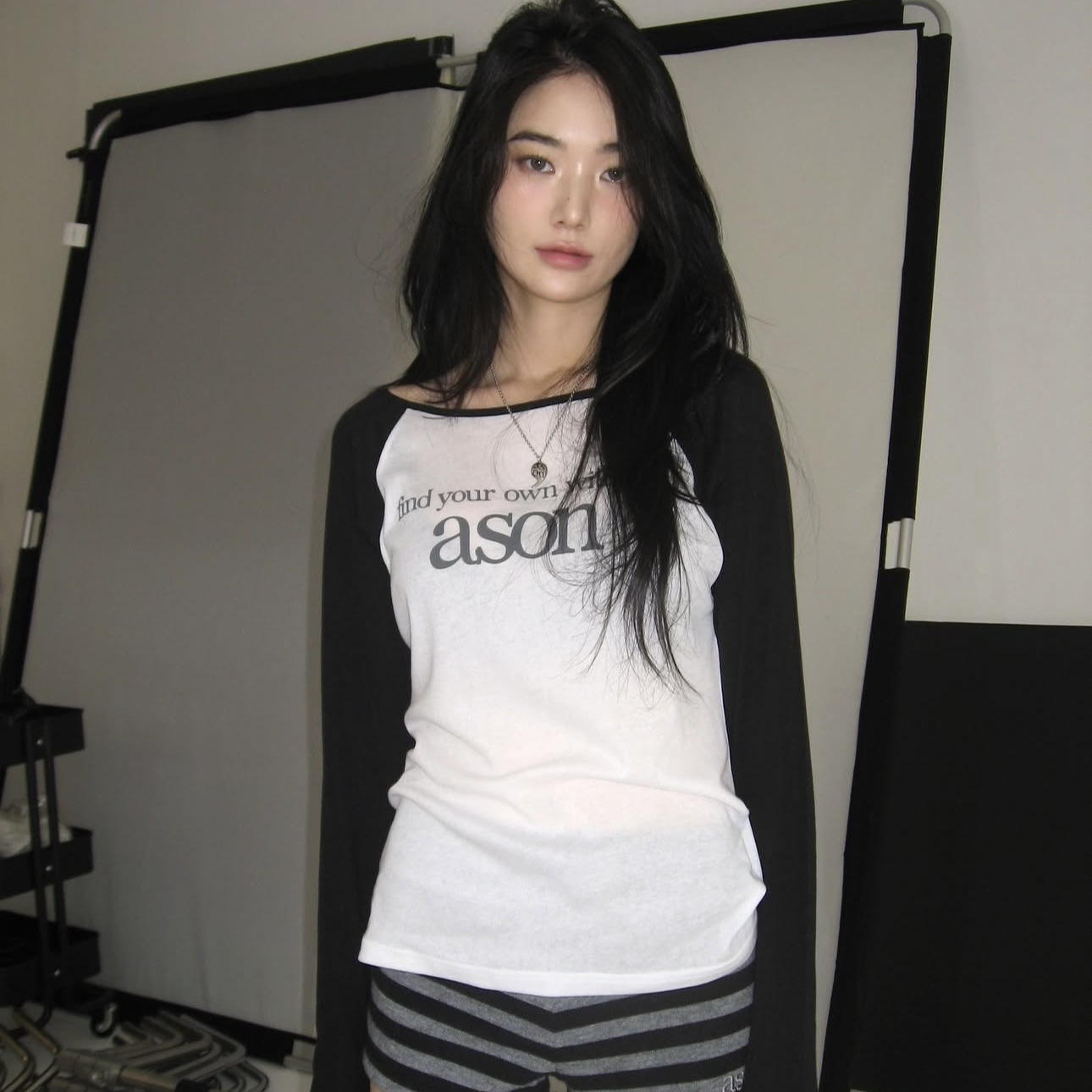 Baju Dalaman Lengan Panjang Wanita Kerah Bulat Lengan Panjang Bahan Sutra Motif Cetak Huruf as * n Versi Korea