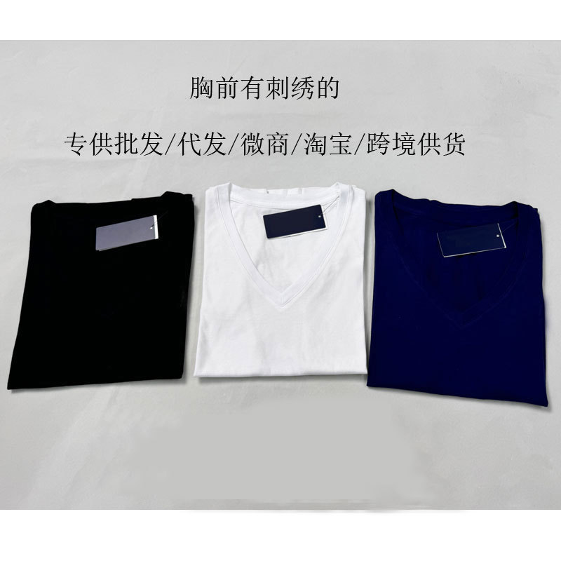 RL LF Baju Atasan Slim Fit Warna Solid Model Amerika Katun Tulen T-Shirt Lengan Pendek Kerah V Wanita Musim Panas Bordir