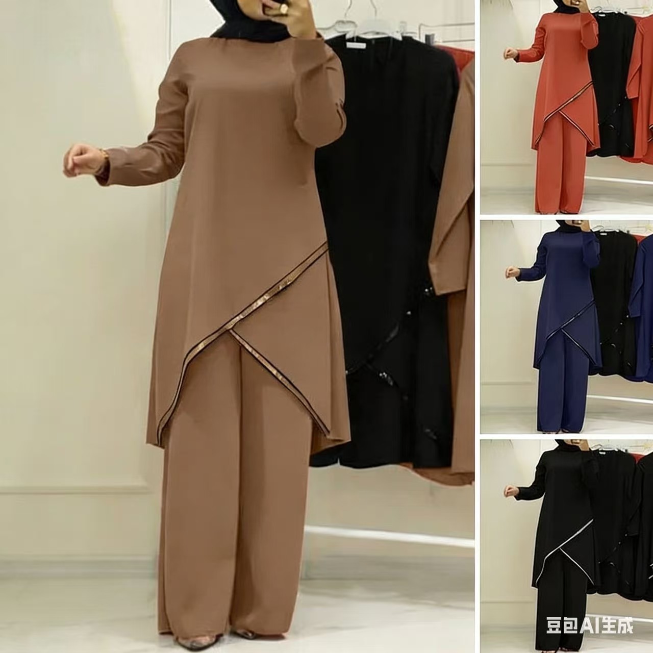 Setelan sweater wanita, dua potong celana panjang warna solid kasual turtleneck AliExpress Amazon musim gugur dan musim dingin 2023