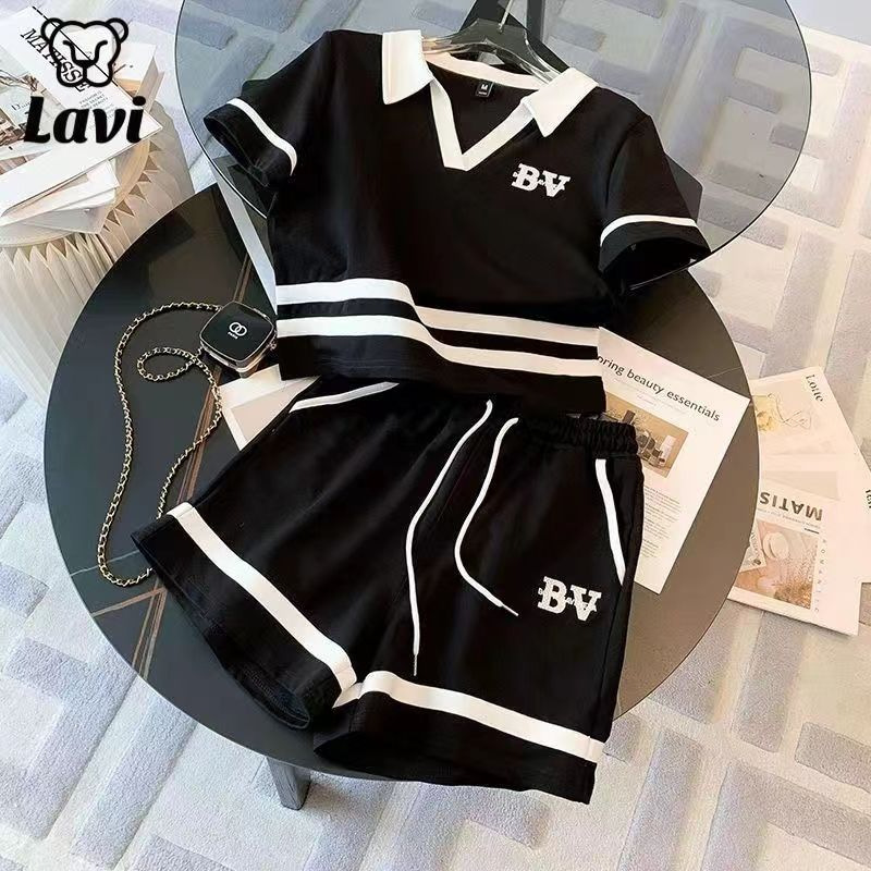 Baju olahraga gaya jalanan goreng gaya Barat wanita, set dua potong celana pendek kasual kelas atas Eropa pengurang usia gaya Barat baru Musim Panas 2024