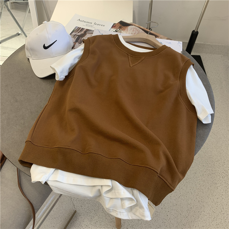 Sweter tanpa lengan gaya jepang, mantel rompi pullover leher bulat, rompi pelangsing serba guna, sweter tanpa lengan longgar kasual