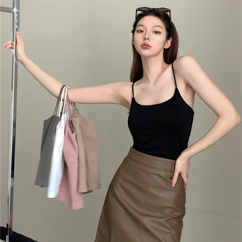Camisole pakaian luar seksi wanita, Atasan Bawahan pendek ramping serbaguna hitam dan putih pakaian dalam kamisol kecil musim panas