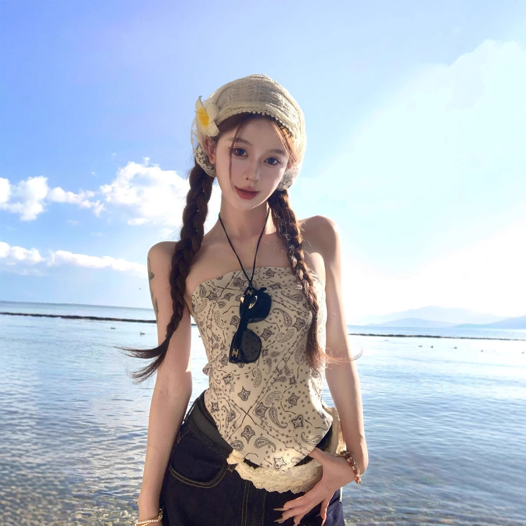 2025 Amazon Cross-Border Gaya Liburan Model Baru Eropa dan Amerika Atasan Tali Gantung Leher Tanpa Lengan