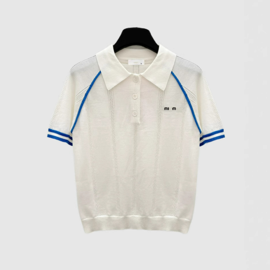 Pakaian Wanita Musim Panas 2025 Atasan Rajutan Lengan Pendek Kuda Perang Bordir Kerah Wanita Musim Panas 2025 Atasan Kasual Mudah Dipadu Padan Model Baru Musim Panas 2025