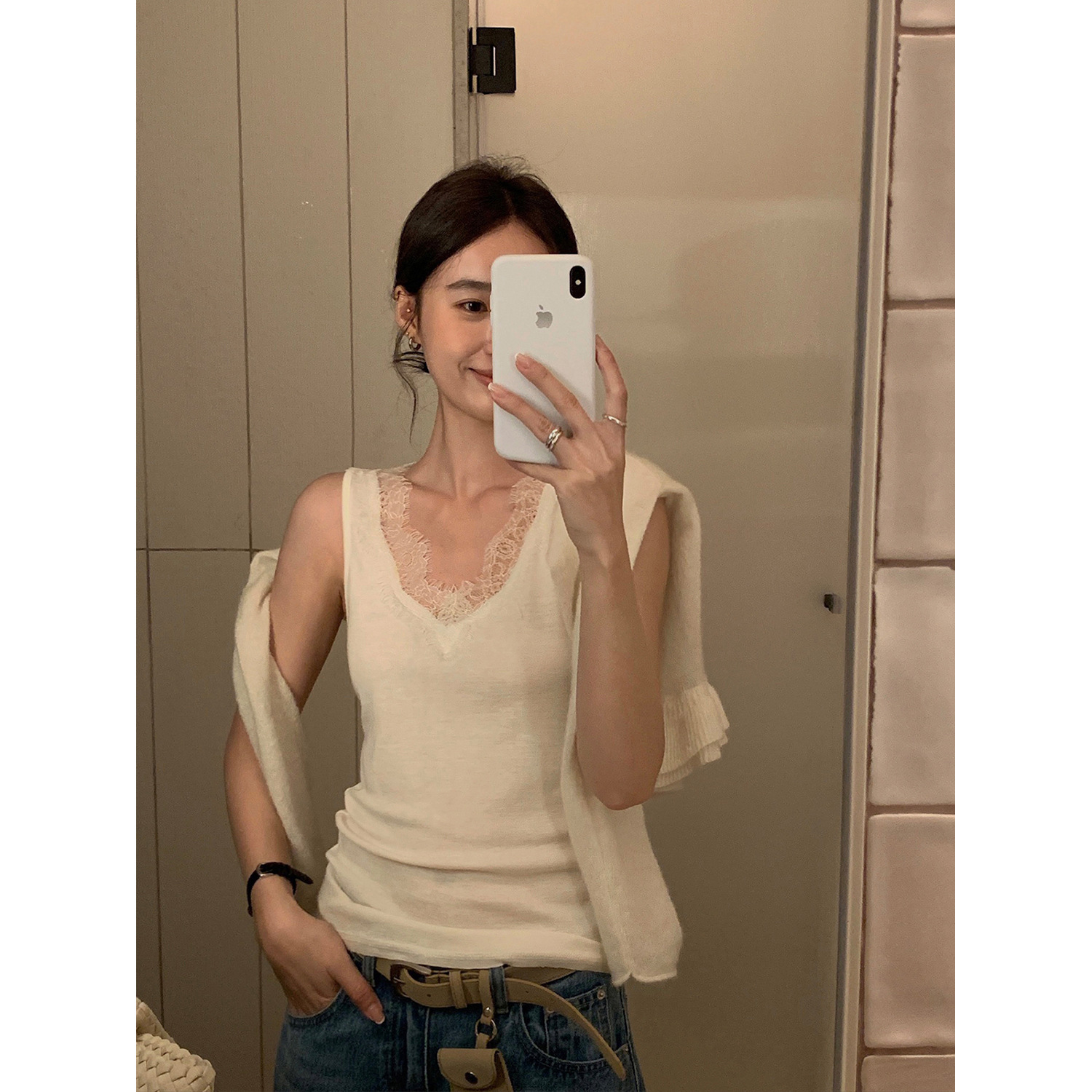 TG 叠穿内搭神器 小心机蕾丝花边V领显瘦背心女2026春日新款26466