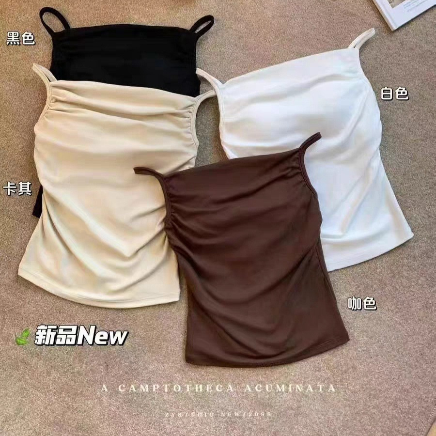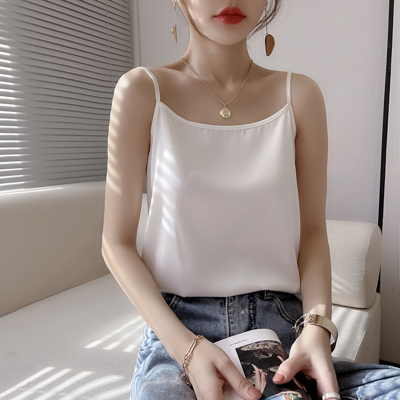 Kamisol sutra sutra untuk wanita, pakaian wanita musim panas 2024, baru slim-fit off-neck, atasan dalam pendek, kamisol Satu bahu