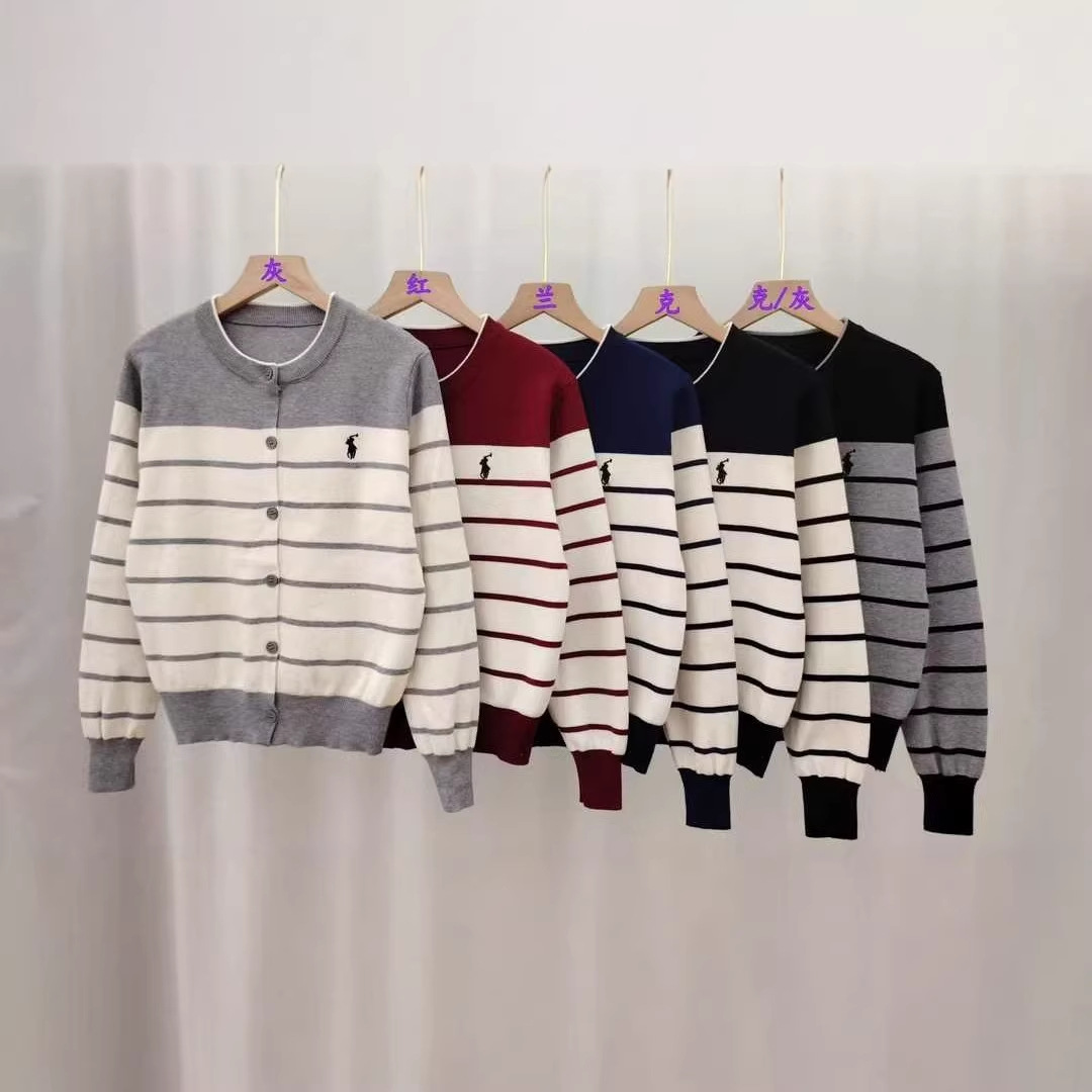 法式复古拼色条纹圆领针织开衫女短外套毛衣春秋新款设计小众上衣