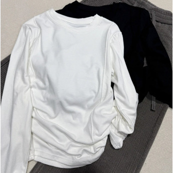 Kemeja Dalaman wanita, Fishbone larut dalam air katun beludru halus warna solid leher bulat lengan panjang bottoming tulang ikan kemeja Dalaman ramping T lengan panjang wanita