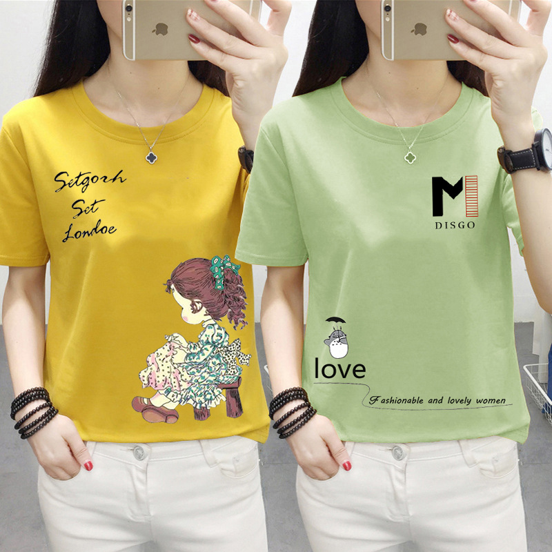 Kaus lengan pendek populer untuk wanita, Atasan kemeja dasar longgar gaya Korea ukuran besar putih musim panas 2023