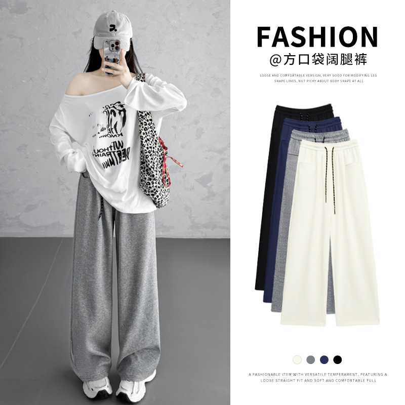 浅灰色运动裤女秋冬2025新款高腰垂感宽松休闲卫裤直筒阔腿裤子