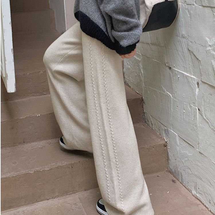 Celana panjang rajut wanita model lebar, musim gugur dan musim dingin 2025, celana wol kasual elastis model granny, celana panjang longgar dan ramping.