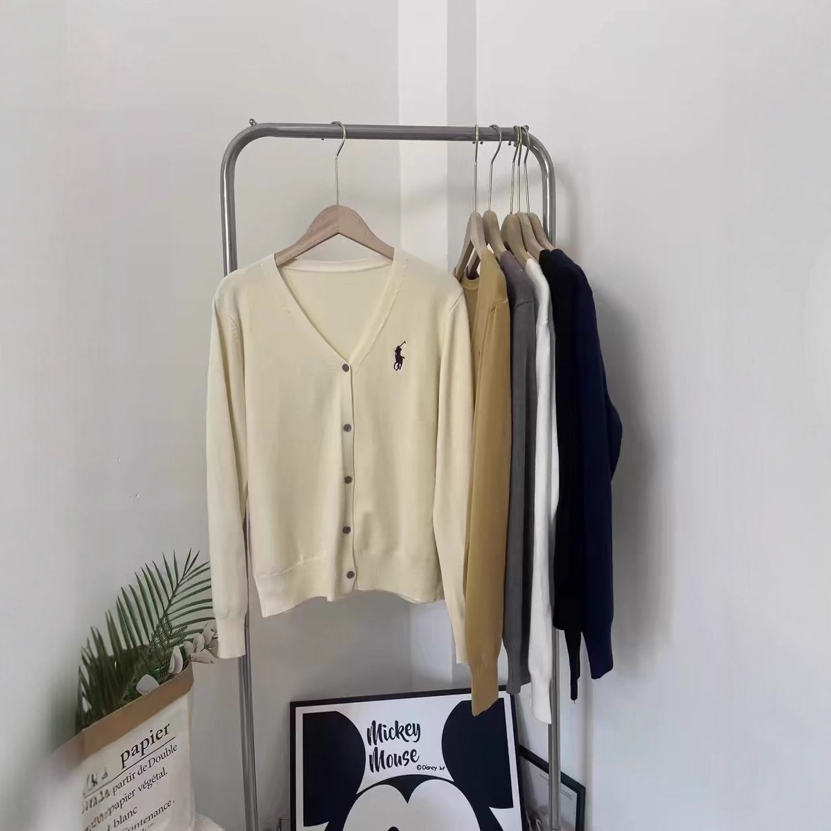 V领刺绣小马针织衫女2024早秋新款宽松简约系扣薄款毛衣开衫外套