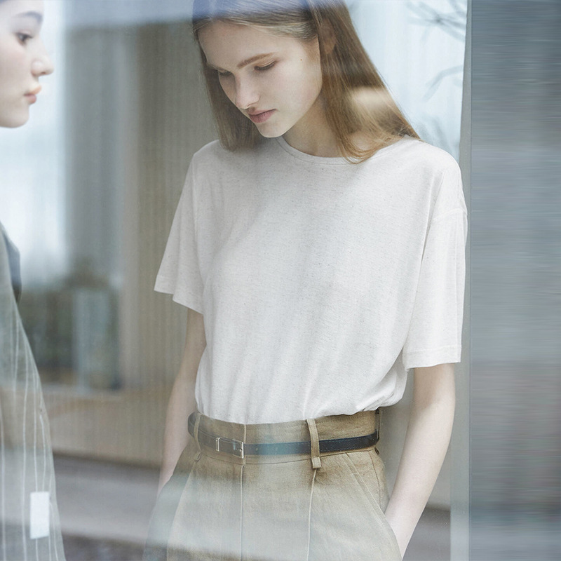 Kaus katun imitasi Nordik niche, blus lengan pendek tipis wanita, pakaian dalam pelindung matahari longgar, Atasan musim panas