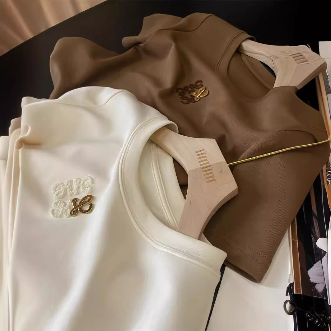 Outlet ~ kaus lengan pendek wanita, atasan longgar baru musim panas leher bulat kasual bordir handuk tugas berat