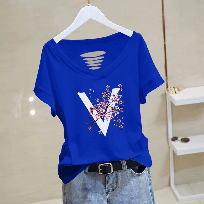 Kaus katun 100% wanita lengan pendek longgar kerah V baru 2024 pakaian wanita kerah ayam atasan kaus kasual musim panas