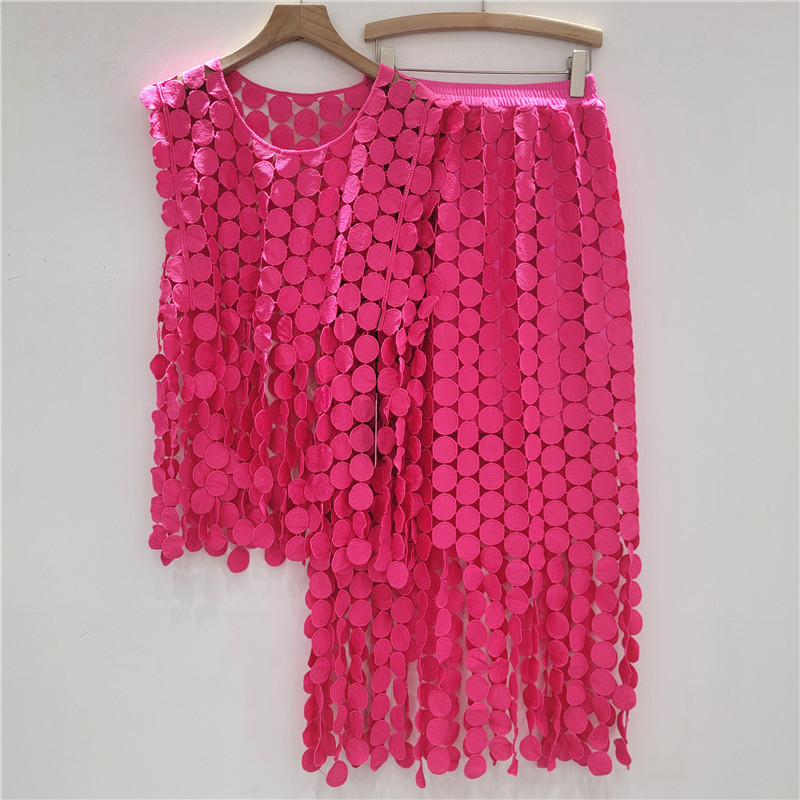 Gaya Desain Niche Setelan Wanita Model Baru Musim Panas 2025 Baju Atasan Renda Berongga Ukuran Besar Longgar Rok Setengah Badan Dua Set Trendi